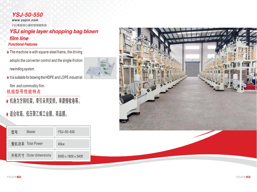 YSJ單層背心袋吹塑薄膜機組YSJ-50-550